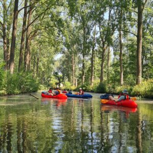 Packraftervaring heb je niet nodig. We geven je alle uitleg en begeleiding zodat je veilig en met vertrouwen het water op kunt. Maar de nadruk ligt niet op techniek — wel op het ervaren. Op rust vinden in beweging.