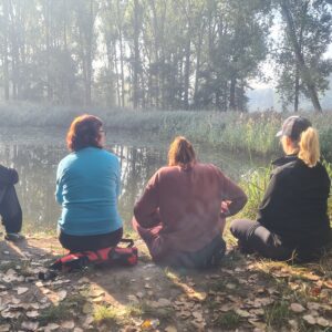 Onderweg nemen we tijd voor een mindfulnessmoment aan de oever. Een eenvoudige oefening helpt je om helemaal te landen in het hier en nu en opnieuw verbinding te maken met jezelf.