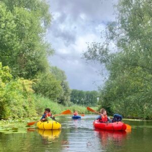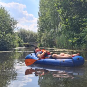 Je krijgt duidelijke uitleg over het materiaal en hoe je veilig en comfortabel met een packraft op pad gaat. Ook als dit nieuw voor je is, word je rustig begeleid zodat je je op je gemak voelt op het water. Daarna laten we het hoofd stilaan zakken en mag je lijf het overnemen. Het ritme van het peddelen, het geluid van het water en de natuur rondom je doen de rest.